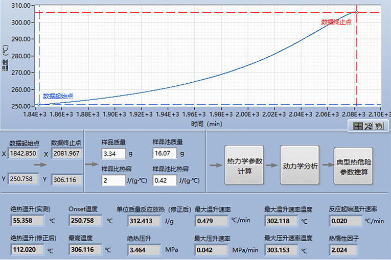 测量物质分解放热的起始温度、绝热温升、温升速率等